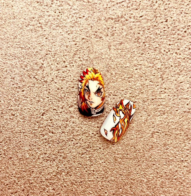 7 43 煉獄さんネイル💅 友達に頼まれて描いてるインテリア用 #煉獄杏寿郎 #鬼滅の刃イラスト #模写 #鬼滅の刃無限列車編 21/07/05 21:05