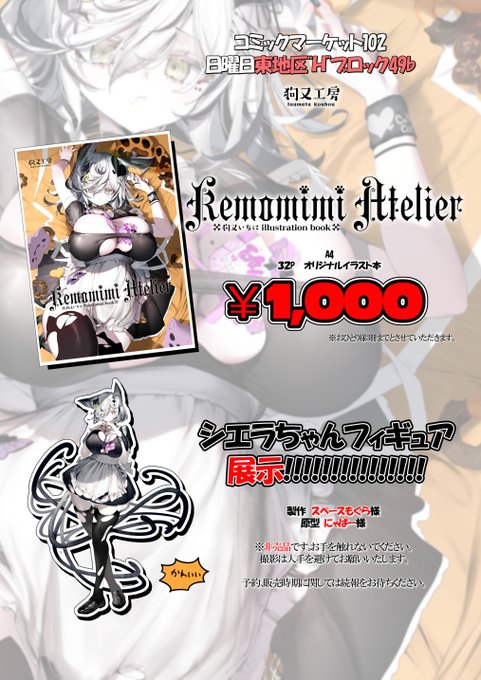 C102おしながきです!!!! スペースもぐら様 #space_mogura のご厚意で、シエラちゃんのフィギュア(塗装前)の展示をさせていただけることになりました、、、! 最高すぎるのでぜひ見に来てください 新刊委託 melonbooks.co.jp/detail/detail.… サークル情報 webcatalog-free.circle.ms/Circle/17302600