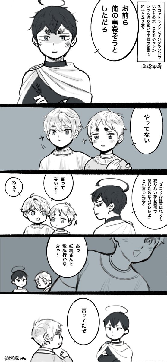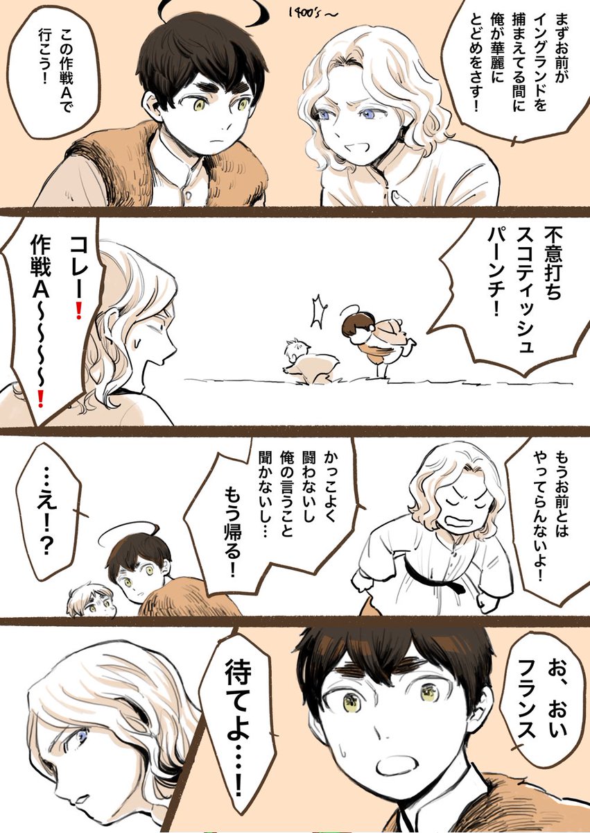 落書き スコとイギ娘 今のスコの弟への態度、昔イギ娘への態度として妄想してたものに近い。 でも、にょたになると外見年齢14くらいのイメージだから スコが大人気なくなる。