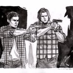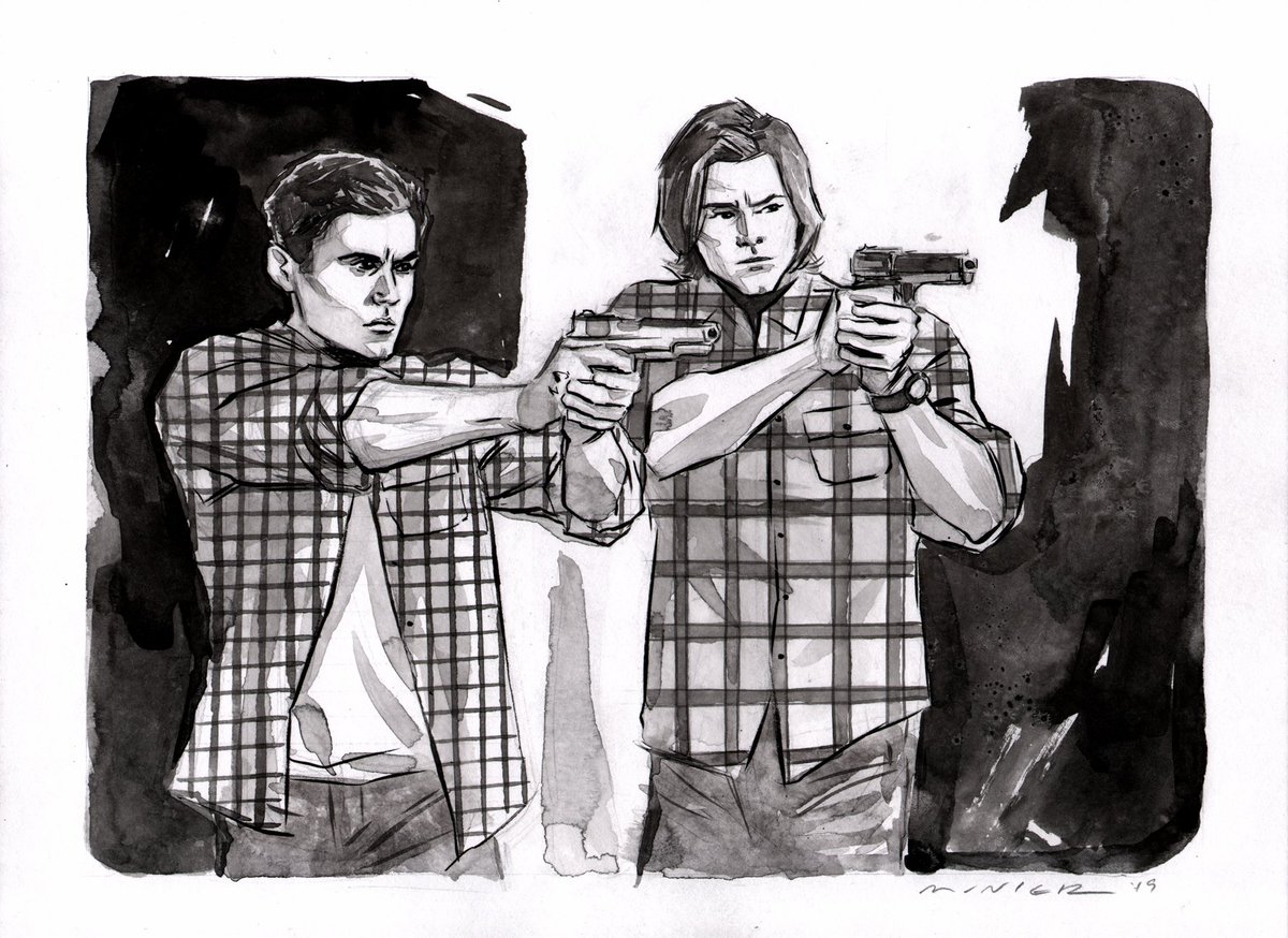 Inktober Day 10: Pattern. Sam and Dean Winchester sporting their best plaid, about to bust a cap in something evil. #inktober #supernatural