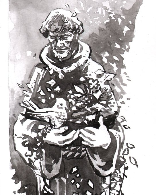 Inktober catch-up time. Day 14: Overgrown. Based off of a cool Saint Francis statue I saw. #inktober #inktober2019 #drawing #illustration #saintfrancis #assisi #catholic #sketch #inkwash