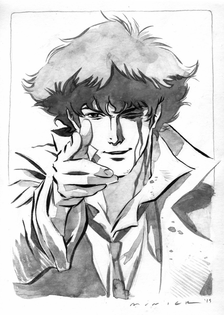 Inktober 29: Injured. You know the line. :) With much respect to Toshiro Kawamoto. #spikespiegel #cowboybebop #inktober2019 #inktober