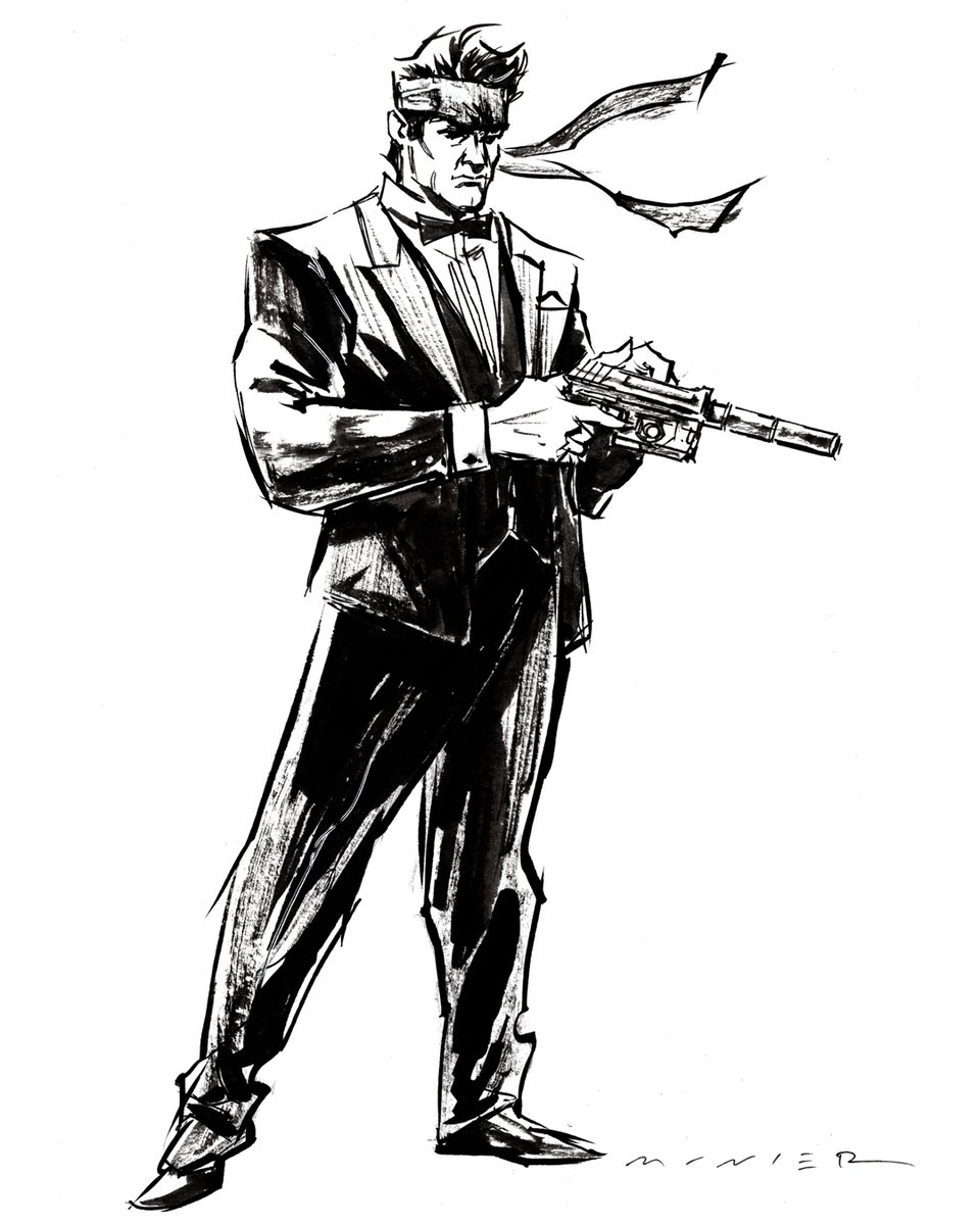GearTober Day 2 : Suit. Solid Snake's snazzy tuxedo in MGS1! Unlocked by finishing the game twice, once with Meryl's ending and once with Otacon's ending. Who remembers THAT? #MetalGearSolid #GearTober #inktober2021