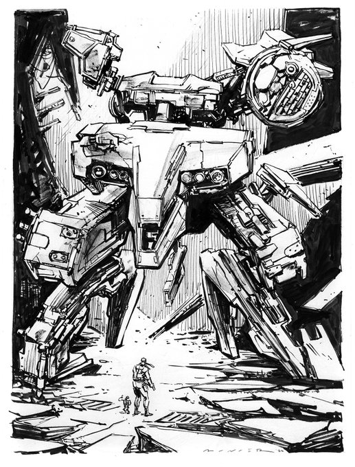 #Inktober returns! Following prompts with dedicated entries to the Metal Gear Solid characters — "Gear-Tober". Day 1 : Gargoyle. The lonely, partially destroyed and near-forgotten Rex from MGS4. Such a moment revisiting Rex’s lair in that game. #metalgearsolid #mgs