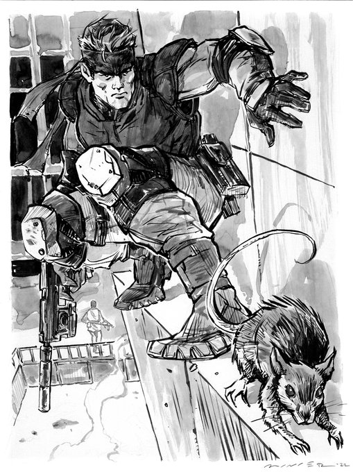 Day 2 : Scurry. That time when Snake was passing through the blast furnace, and Otacon suggested he take the path over the lava by scaling the wall on a narrow ledge like the rats were doing. #inktober2022 #Inktober #MetalGearSolid
