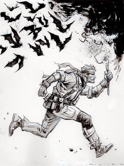 #inktoberday3 : Bat. Don’t run in a cave with vampire bats or they’re gonna snack you up, Snake. Did anyone else figure out that the bats will leave you alone if you equip the Active Sonar in the caves? #inktober2022 #metalgearsolid #MGS #GearTober