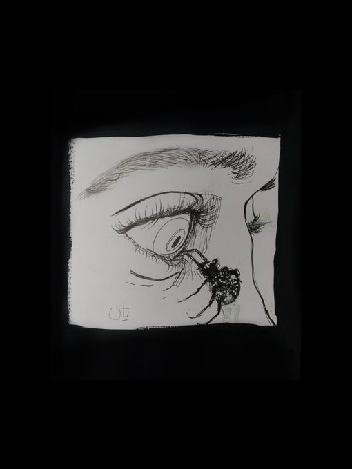 liktober day 21, insects (the little dots on the spider r suppose to be its babies)) #liktober #liktober2020 #inktober #inktober2020 #inktober2020day21 #inktoberday21 #art #spider #spiders #eye #eyes #ink #finelije #artist #ArtistOnTwitter #illustration #illustrator