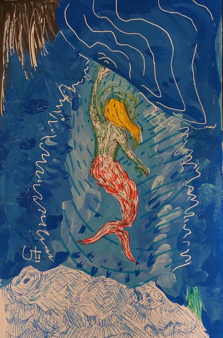 liktober day 12, siren. Weirdest one I’ve made #liktober #liktober2020 #inktober #inktober2020 #Inktoberday12 #inktober2020day12 #siren #underwater #mermaid #fish #illustration #art #artist #artistontwittter #mixmedia #drawing #paint #paintings #painting