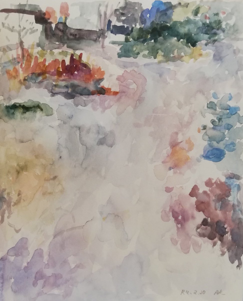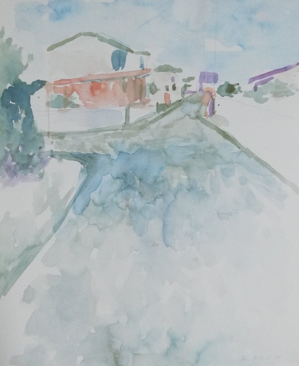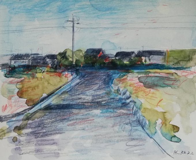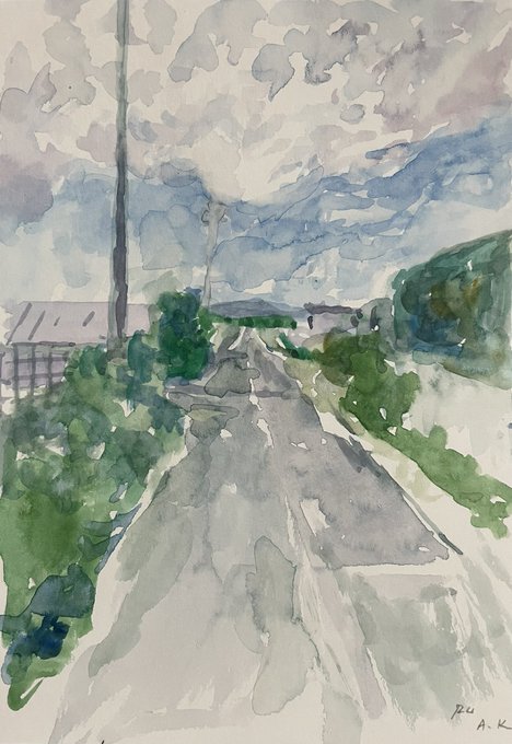 みちのむこう 水彩紙の裏に水彩、色鉛筆 22.3×27.9cm #水彩画 #watercolor #風景画 #art #painting #abstract #artwork #artist #artgllery #landscape