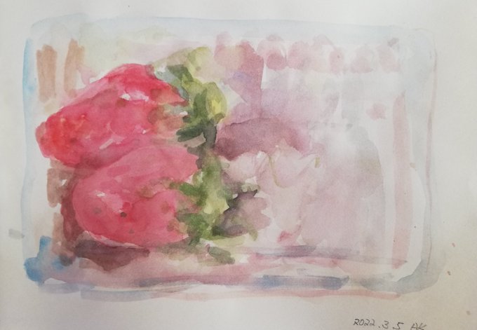 二つのイチゴ ザラ紙に水彩 12.8×17.5cm #水彩画 #watercolor #artgllery #art #artwork #イチゴの絵 #水彩スケッチ #artist #stilllife #静物画 #sketch