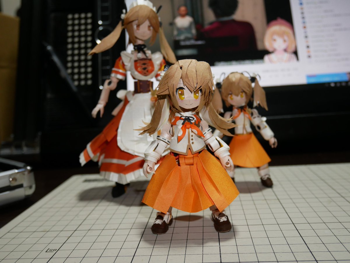 47 128 差し上げたものなので到着するまでは…と思っていたのですが無事辿り着いたようなので。 何時ものようにすべて紙製、スカート、前髪や耳含め大体動きそうなところは全部動きます。ドスとチャカはご本人と同じく現在寝床の下に隠してあります。(続く) #はねるあーと 20/03/18 01:26