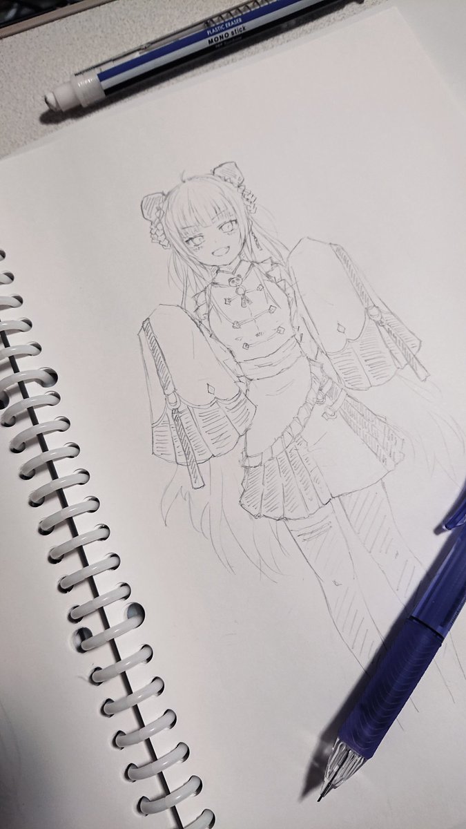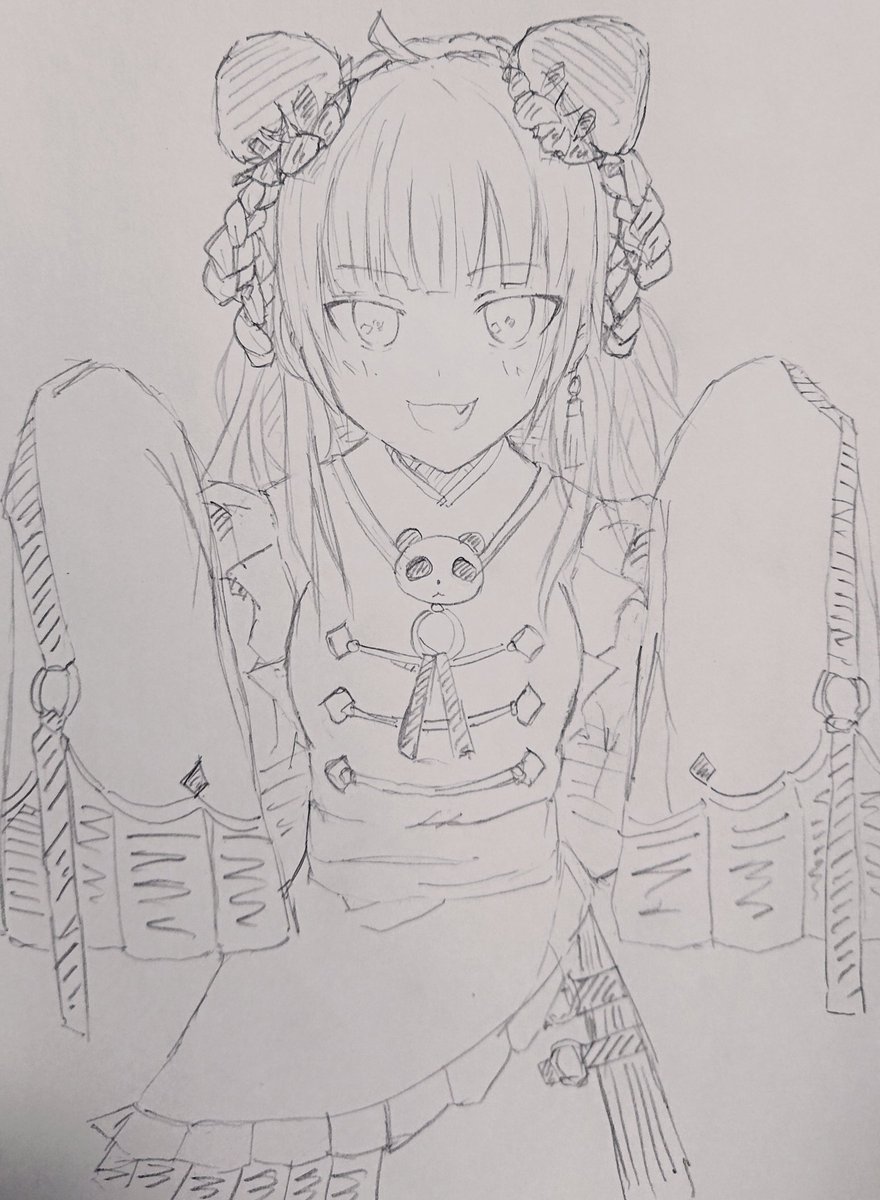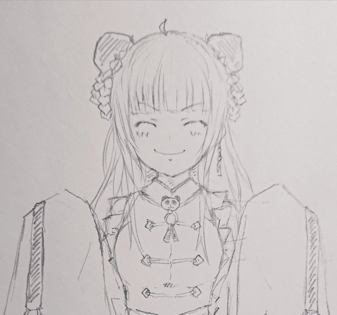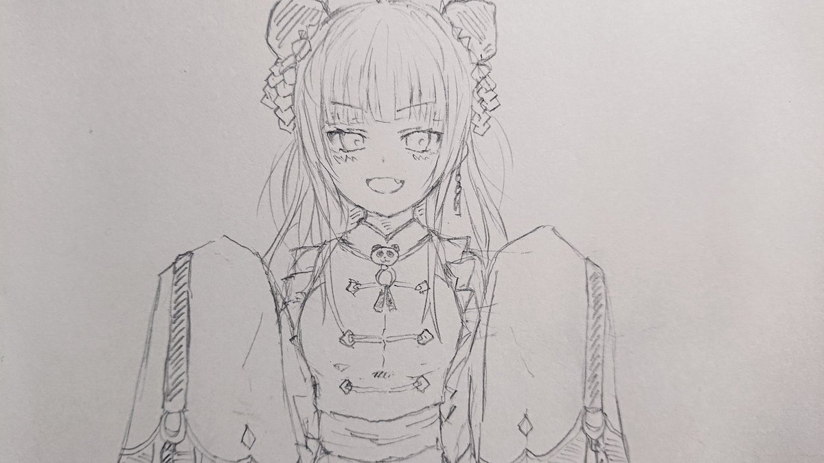 紙一枚まるまる使って描いたら顔しか入らなかった #さくぱんにあげるやつ