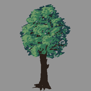 #ドット絵 全然木がかけない、丸みの立体を意識すればいいんだろうけどなんか稚拙になる、何がいけないのかわからない、葉っぱの書き方が雑か?