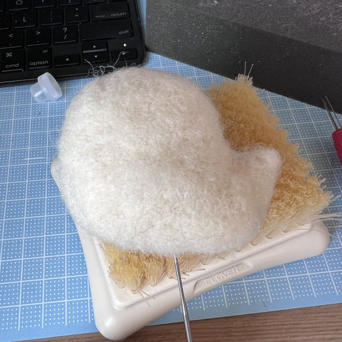 1 18 諸々接着 あとは微妙性かなぁ…毛量すげぇっ #羊毛フェルト 22/09/18 13:54