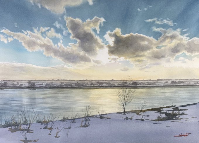 冬空の輝き 35x50cm #透明水彩 #Watercolor