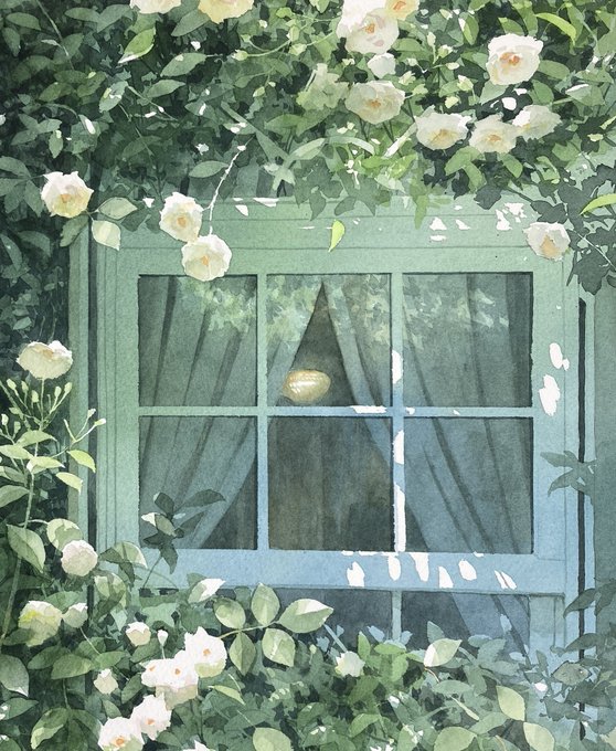 バラの咲く窓辺 30x40cm #透明水彩 #Watercolor