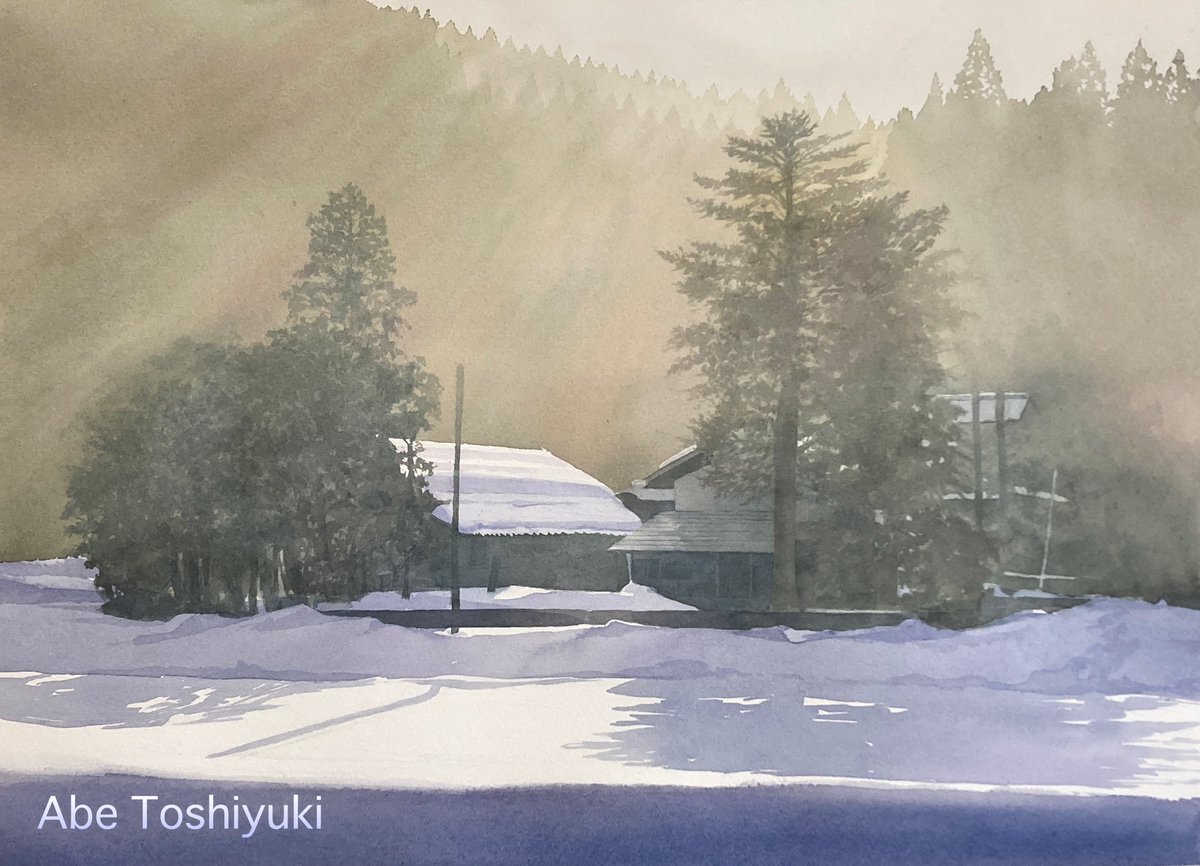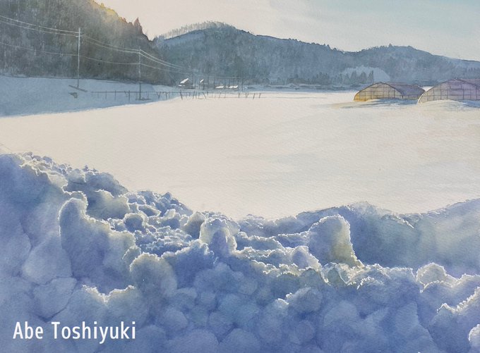 全くの季節はずれですが、今年描いた雪景色で一番気に入ってる作品です。明後日から丸善本店に展示します。 #透明水彩 #Watercolor