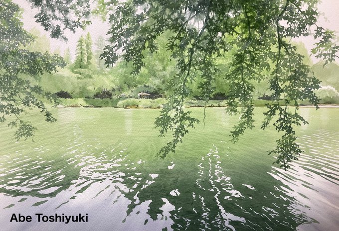 暑い夏に水辺の絵でも #Watercolor #透明水彩