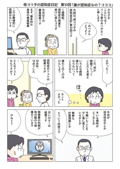 どうもどうも~。あべかよこです~。「認知症になった母のマンガ第10回」検査の結果ですよ。不安しかないよね。え?やっぱり…?そそれでどうすればいいんですか?え?そんな説明はないの?マジで?フォロー、リツイートを頂けると嬉しいです!#認知症 #コミックエッセイ #漫画が読めるハッシュタグ