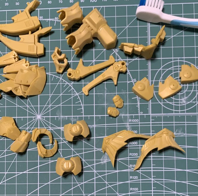 あれあれ、やってるの?と言われてしまいそうですが、仕事多忙の為なかなか出来ず。コレで大体3分の1位表面処理完了。ガンプラと違い手間が掛かるけどエッジがビシバシ立ってるので、完成するとカッコ良いぞ〜 #ガンプラの画像を貼るとRTされると聞いて #FSS