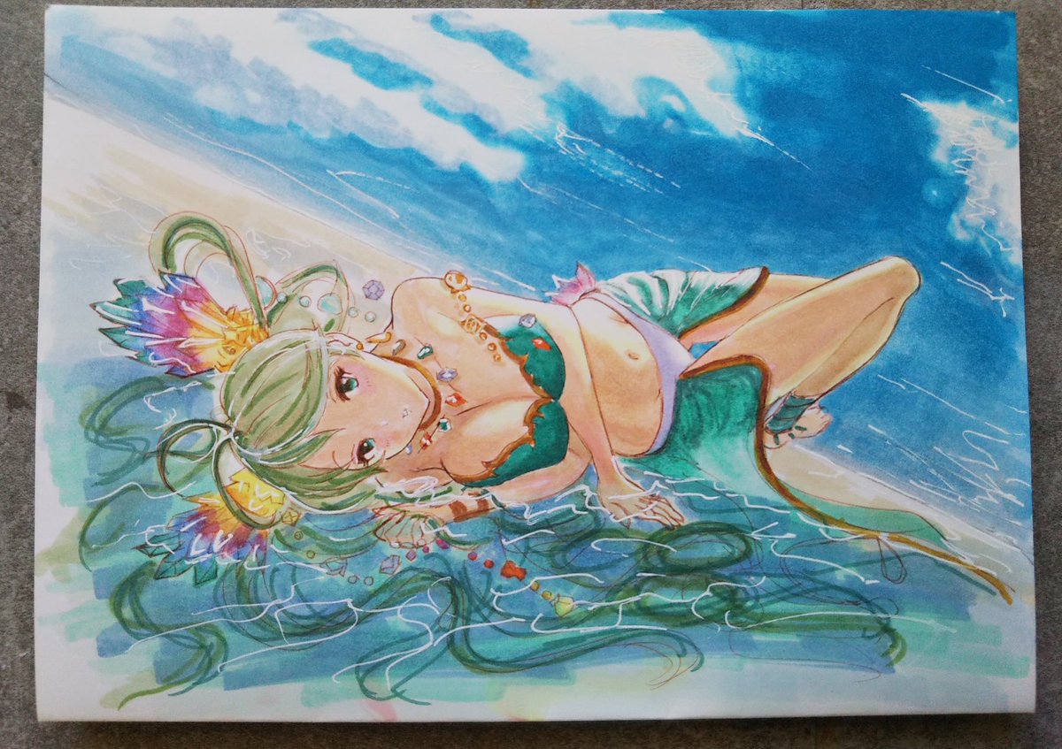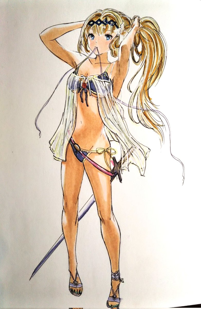 摸写でポーズ練習 グランブルーファンタジーのジャンヌ。水着コスチューム #絵描きさんと繋がたい #イラスト好きさんと繋がりたい #コピックイラスト #アナログイラスト #グランブルーファンタジー #秋の創作クラスタフォロー祭り