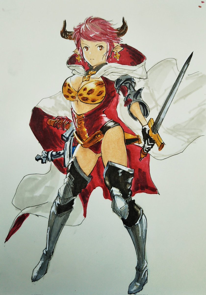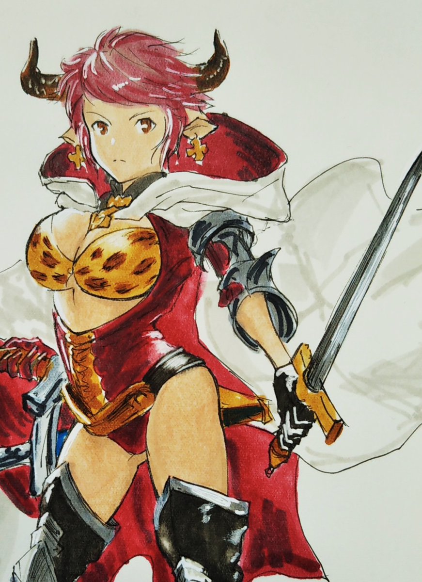 ひさびさ登場 摸写でポーズ連絡 グランブルーファンタジーのアリーザ #絵描きさんと繋がりたい #イラスト好きな人と繋がりたい #グランブルーファンタジー #摸写練習 #コピック #秋の創作クラスタフォロー祭り