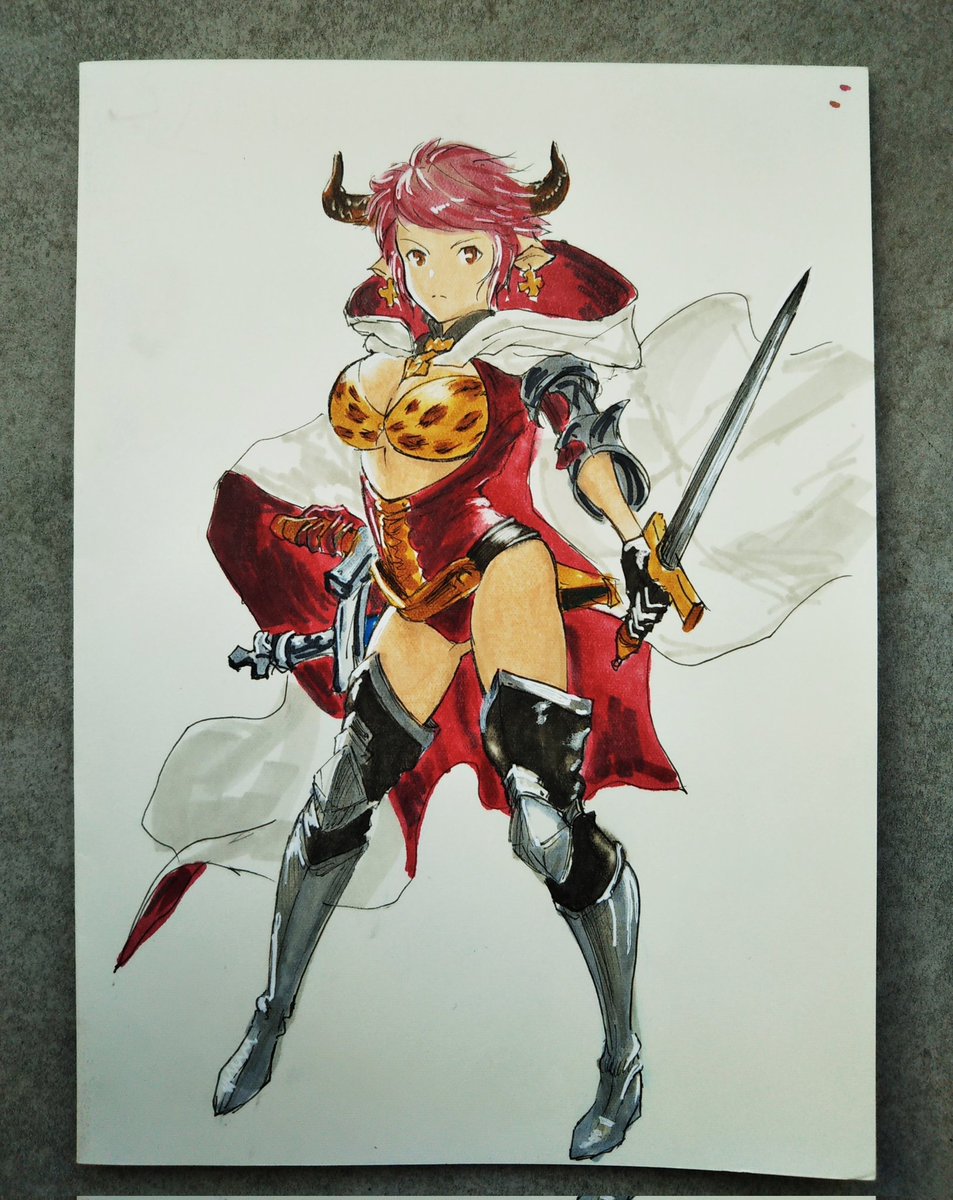 摸写成果発表! 以前デジタルで描いたキャラクターをグランブルーファンタジー風に進化 少しオリジナル色出てきたかな? #絵描きさんとつながりたい #イラスト好きな人と繋がりたい #グランブルーファンタジー #摸写成果 #アナログイラスト #コピック #秋の創作クラスタフォロー祭り