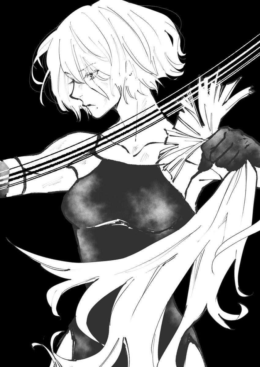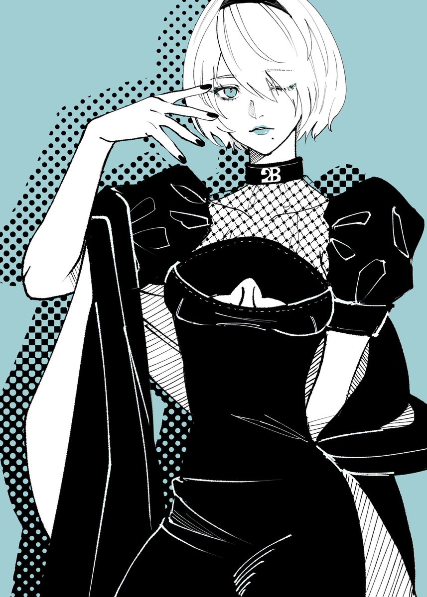 #今月描いた絵を晒そう NieRっぽい衣装シリーズの2Bさん (デザイン思いついたら増やしていきたいな)