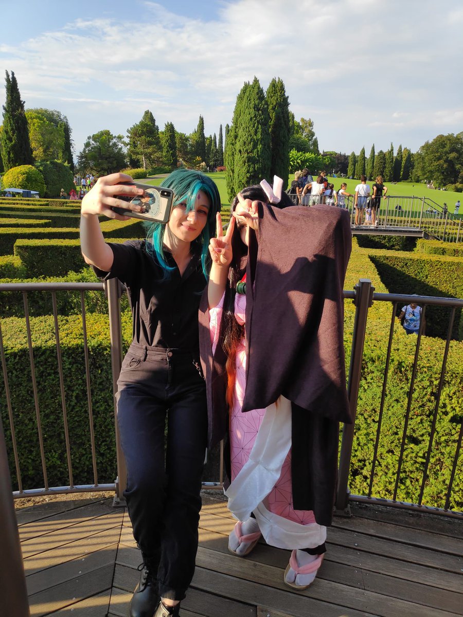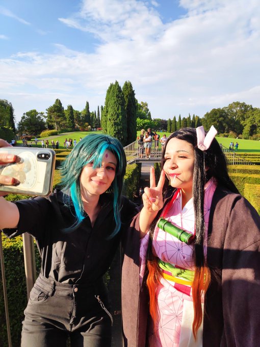 When you’re taking a selfie with a (very) short friend ✨ Nezuko: @atsumuswhore_ 🌸 Xiao: me 🍃 #friends #cosplay #parcosigurtà #nezuko #DemonSlayer #xiao #GenshinImpact #Genshin #funny