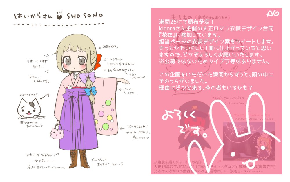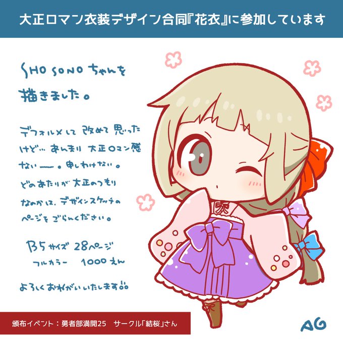 満開25にて頒布予定🌸 kitoraさん主催の大正ロマン衣装デザイン合同『花衣』に参加しています きっとかわいらしい1冊に仕上がっていると思いますので、どうぞよろしくお願いいたします🎀 twitter.com/kitoraNexus/st…