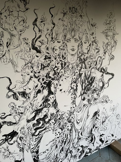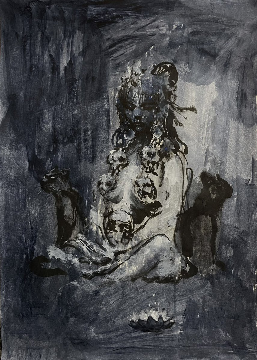 Kali & guardian cats, inspired by the condition of stray animals, how they depend on small token of kindness from humanity. mistreated and ostracized by superstitions, black is auspicious. invoking the Mother goddess brings us closer to empathy, little acts of love🙏🖤