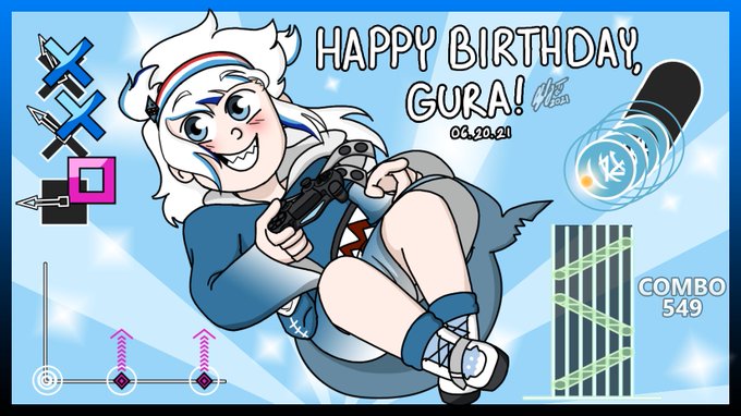 I'm a day late, but happy birthday to my favorite shark!! ✨💙✨💙✨ From one rhythm gamer to another, thank you for the love you share for them. 💖 #gawrt #GURABIRTHDAY2021