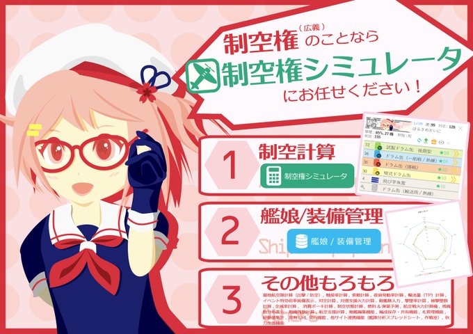 協議の結果制空権に関係あると判断したため、制空権シミュレータのファンアートを描きました。 明日よりv2移行後初のイベント海域ですが、今回もよろしくお願いします! #艦これ #制空権シミュレータ
