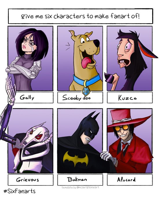 Hop voilà mon premier six fanarts challenge. Je fais qui en suivant ? . . #sixfanarts #sixfanartschallenge #drawing #draw #dessin #gunnm #gally #scoobydoo #kuzco #grievous #batman #alucard #hellsing #starwars #disney #comics #manga #anime