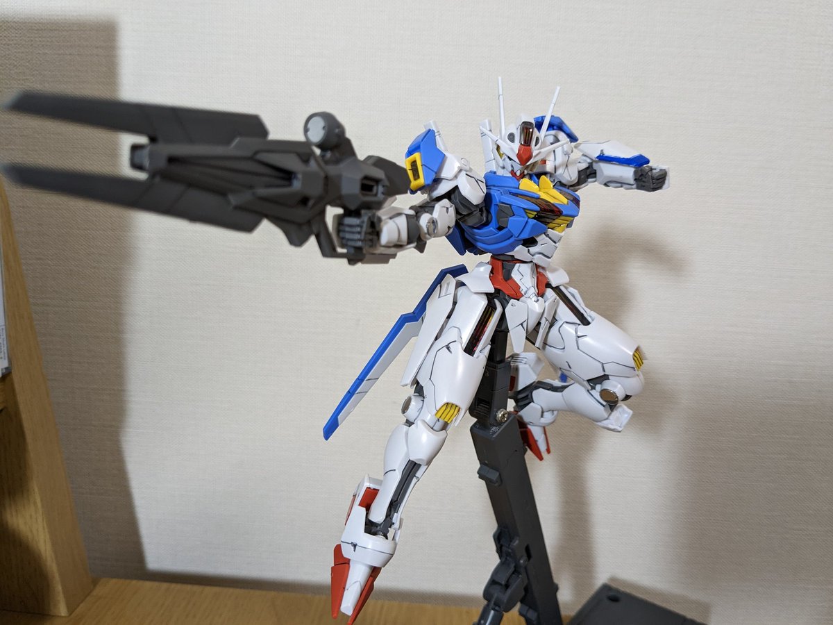 HG ガンダムエアリアル 完成! 墨入れし、一部ガンダムマーカーで塗装しました。少し男らしい仕上がりになった気がする…w ビットオンフォーム最高にかっこいい…水星の魔女の他の機体も作りたい… #ガンプラ #ガンプラの画像貼るとRTされると聞いて #ガンプラ好きと繋がりたい #ガンダム #水星の魔女