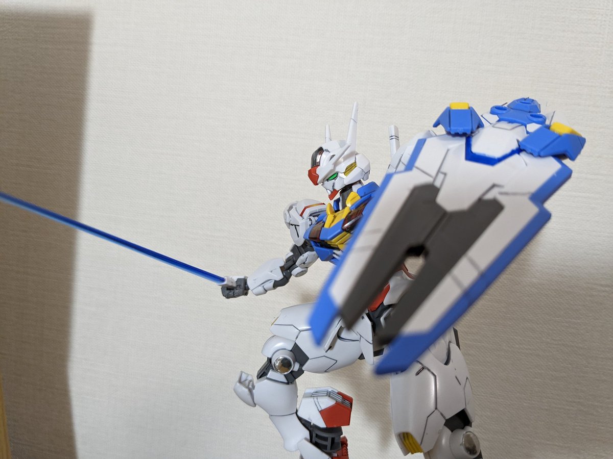 HGミカエリス、完成しました! スタイルがいいね…騎士っぽくて好きです。 有線装備大好きマンなのでビームブレイサーお気に入りです、展開したときがかっこいい…………。 #ガンプラ #ガンプラの画像貼るとRTされると聞いて #水星の魔女