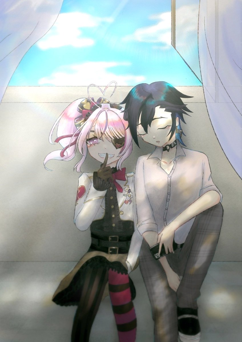 ??「マリア、ユーゴそろそろ帰r……」 マ「し~~~ッ!」 ※捏造衣装注意 #MariArt #AsumArt