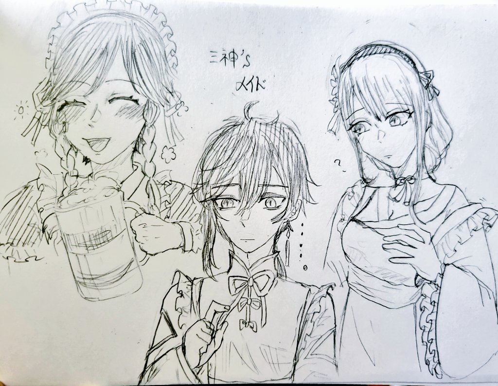 1 8 お前〜やる事あるのに何描いてんだよ…ほぼ殴り書きで落書きなの申し訳ない しかも何気三神初描き #原神イラスト #落書き #雑で申し訳ない 22/05/11 16:29