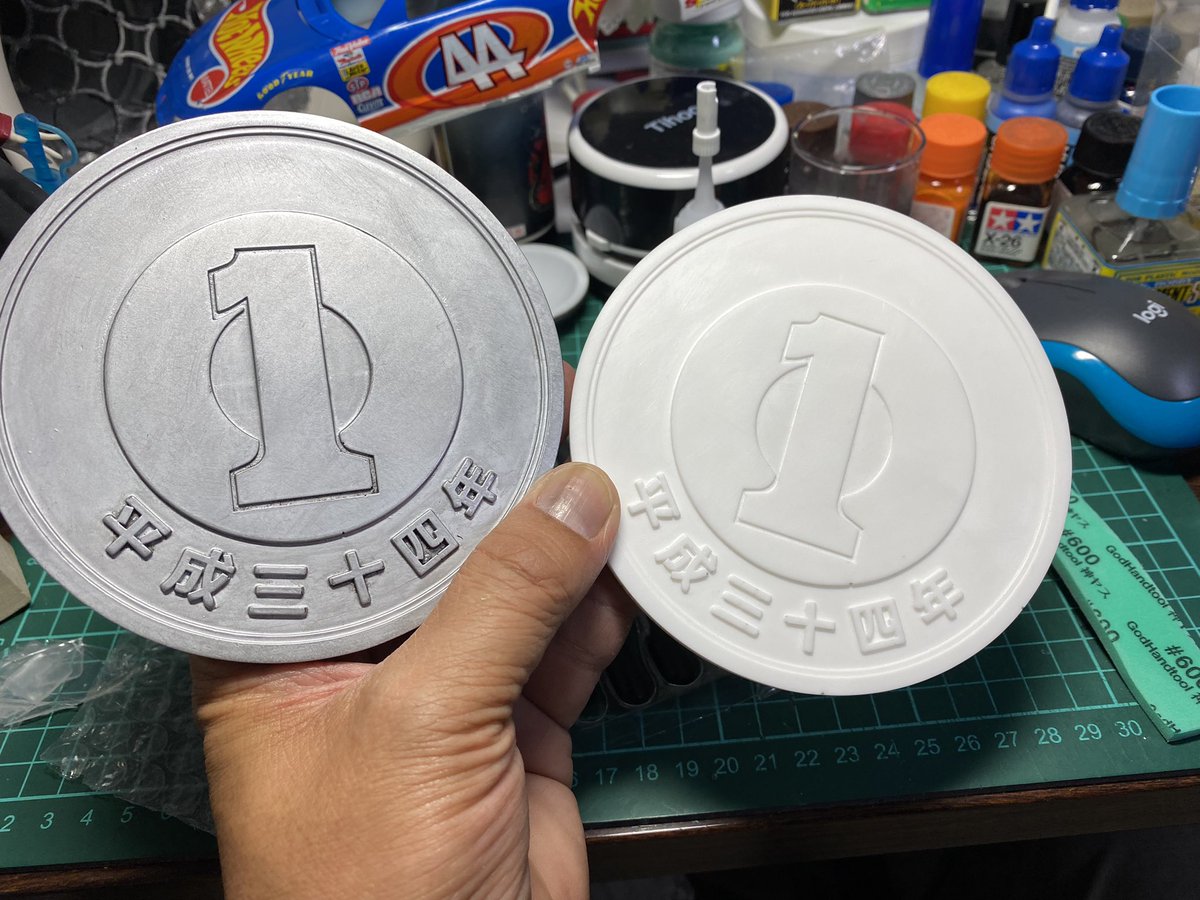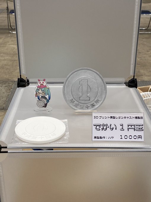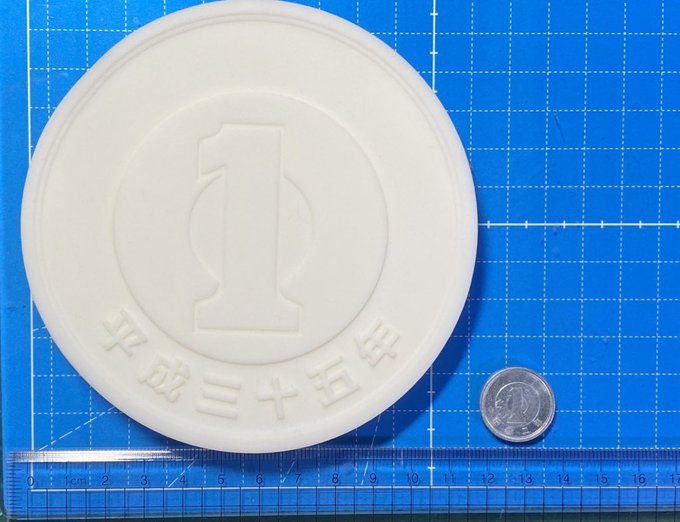 ごあんない ワンダーフェスティバル2023夏 7/30((日)幕張メッセ 5-6-11 百鬼夜行にて ジョークグッズでかい1円玉(未塗装)を販売します 新作:くっそでかい1円玉 3000円 再販:でかい1円玉 1000円 インチキ写真撮影用悪用禁止 比較用ジムはMG1/100 よろしくお願いします #WF2023S #WF2023Sおしながき