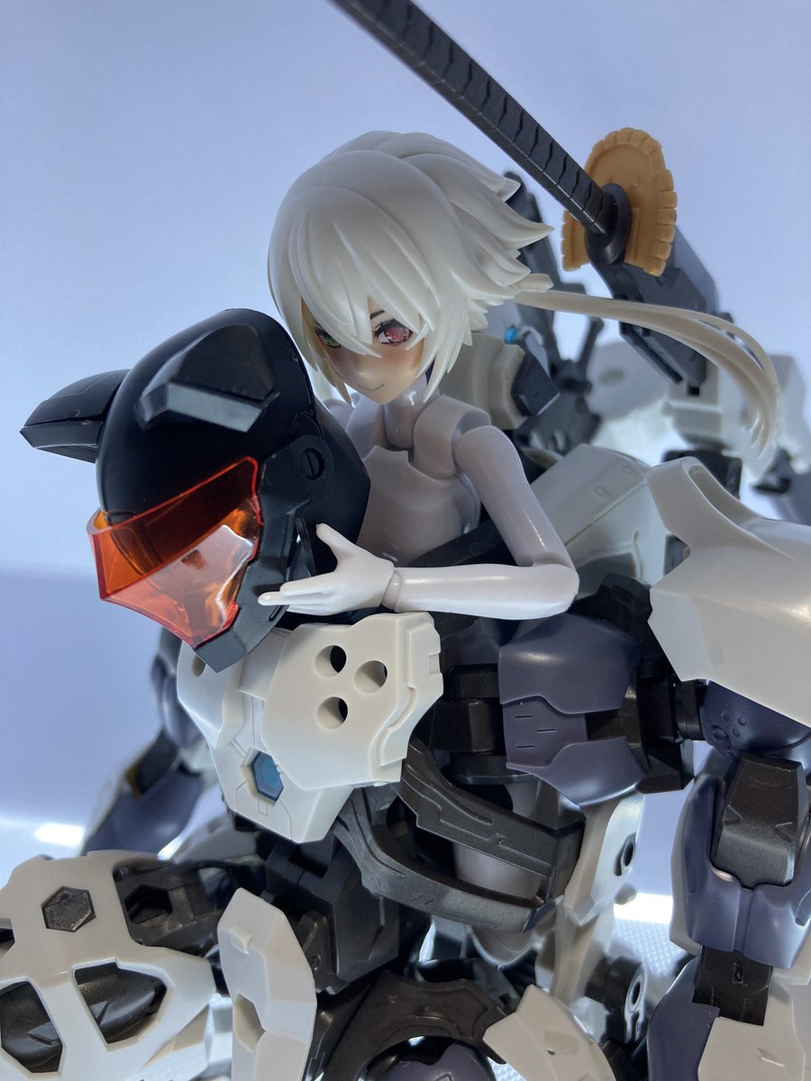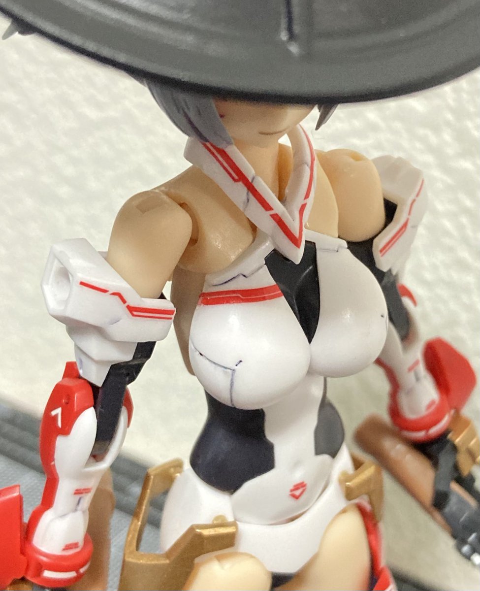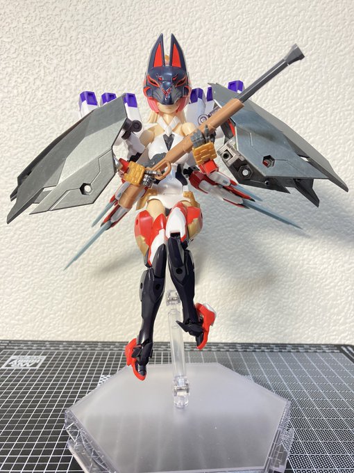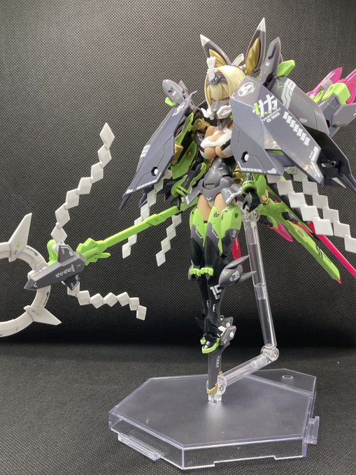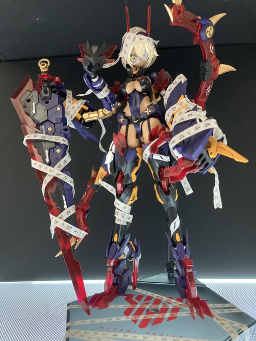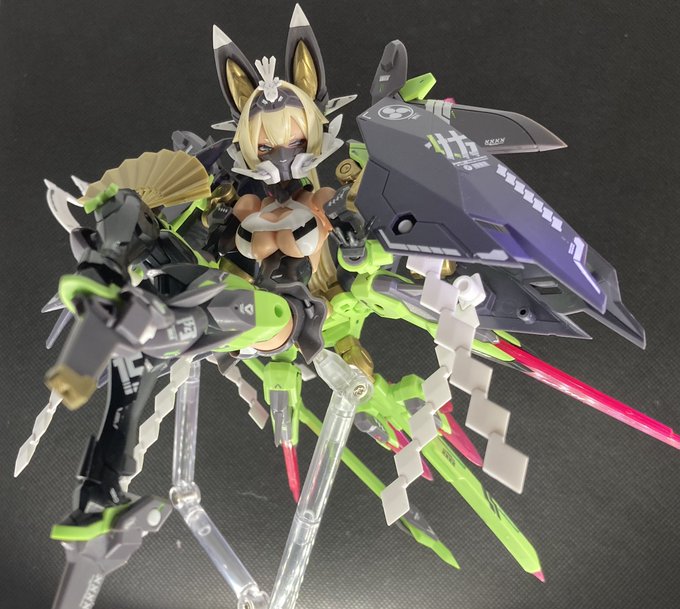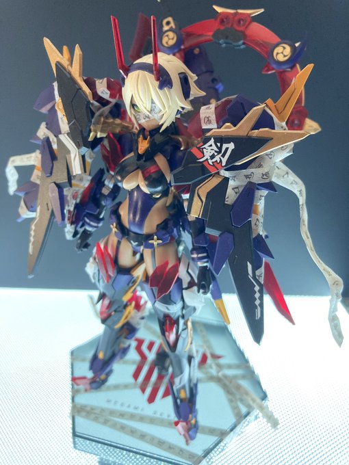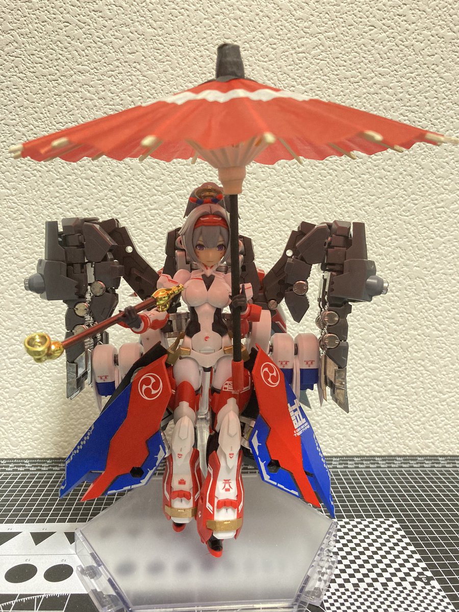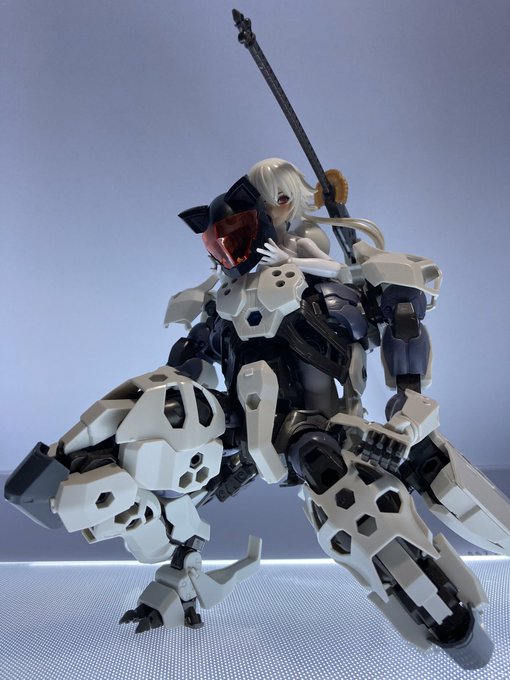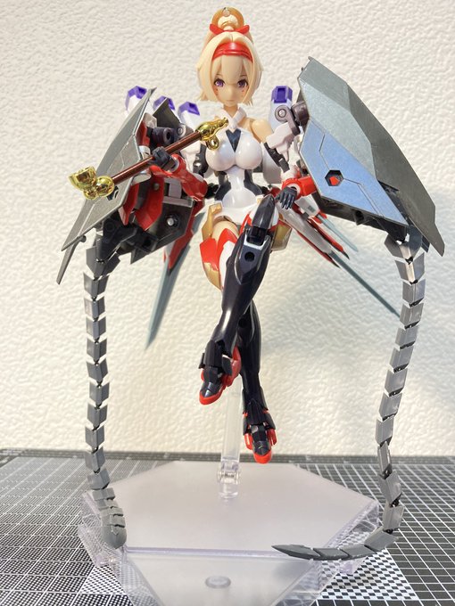 初ヘキサに「いいね」してもらえて大変嬉しいです! やってるコトはビミョーにヘキサちゃう気もするけどw 実際メガミをすっぽりきちんと乗り込ませているのではなく身体の特に胴体から下部はバラバラにしてムリヤリ中に詰め込んでますw #これが俺のブイトール #メガミデバイス twitter.com/ac_umk/statu…
