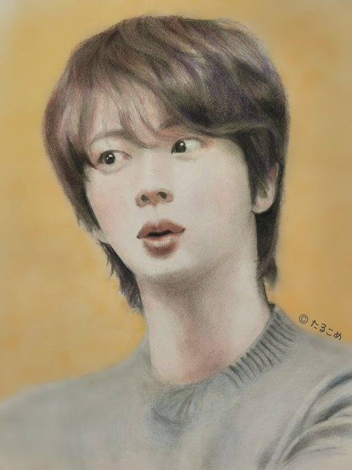 332 1282 今年初めての絵 ずいぶん間があいてしまった #btsfanart #Jin #色鉛筆画 23/01/15 01:35
