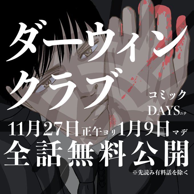 『ダーウィンクラブ』11月27日(日)より講談社「コミックDAYS」にて週刊連載を再開します。大量無料キャンペーンも準備中。引き続き&この機会に新規様もぜひ、よろしくお願いします!! comic-days.com/episode/326975…
