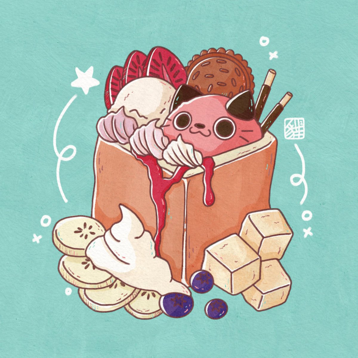 Uniform + Banana Dog🍌 Have anyone tried or remember the Tokyo Banana Cake? It’s my inspiration today and I miss them so much 😍 #peachtober21 #cheektober21 #inktober2021 #foodillustration #illustration #イラスト