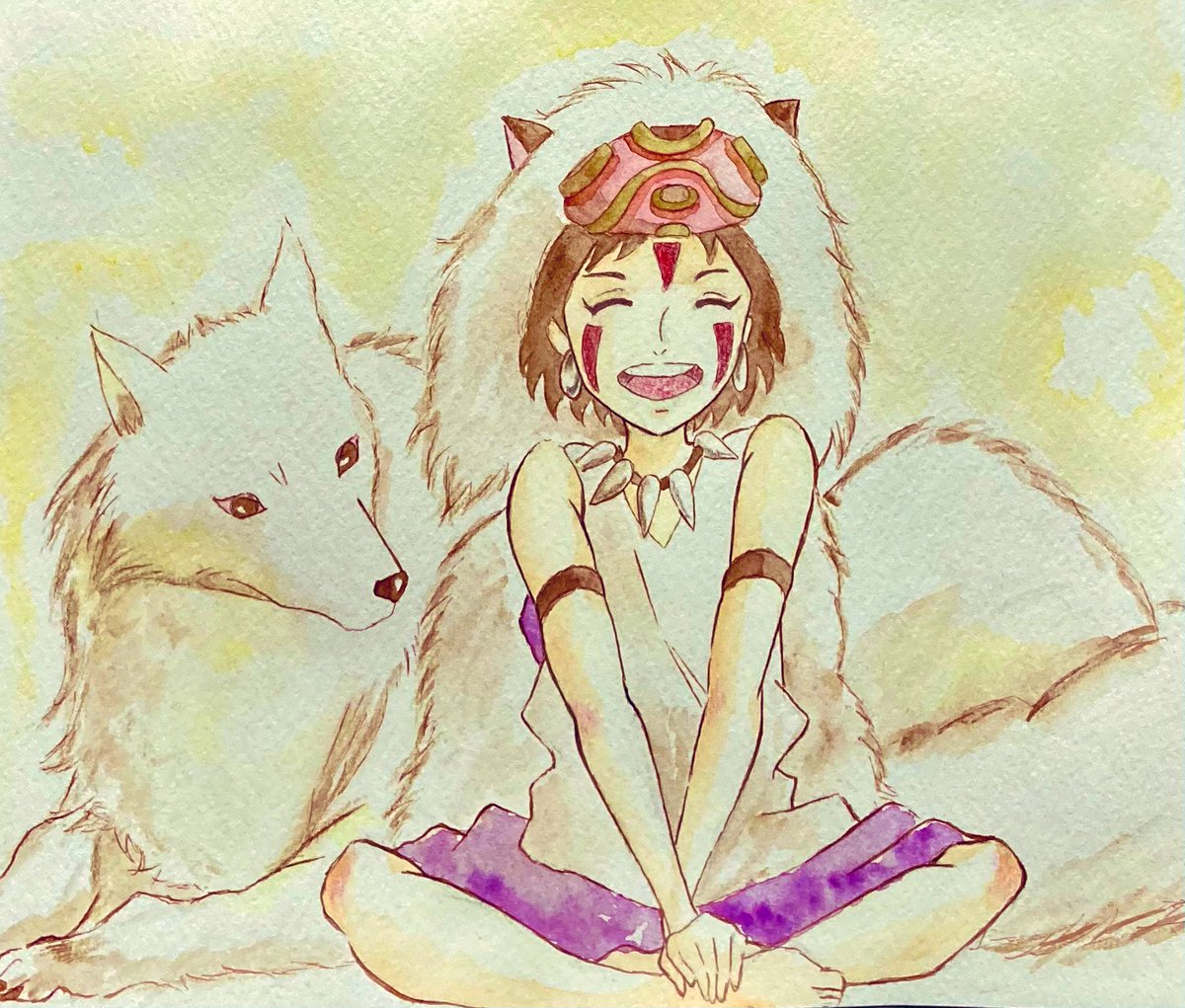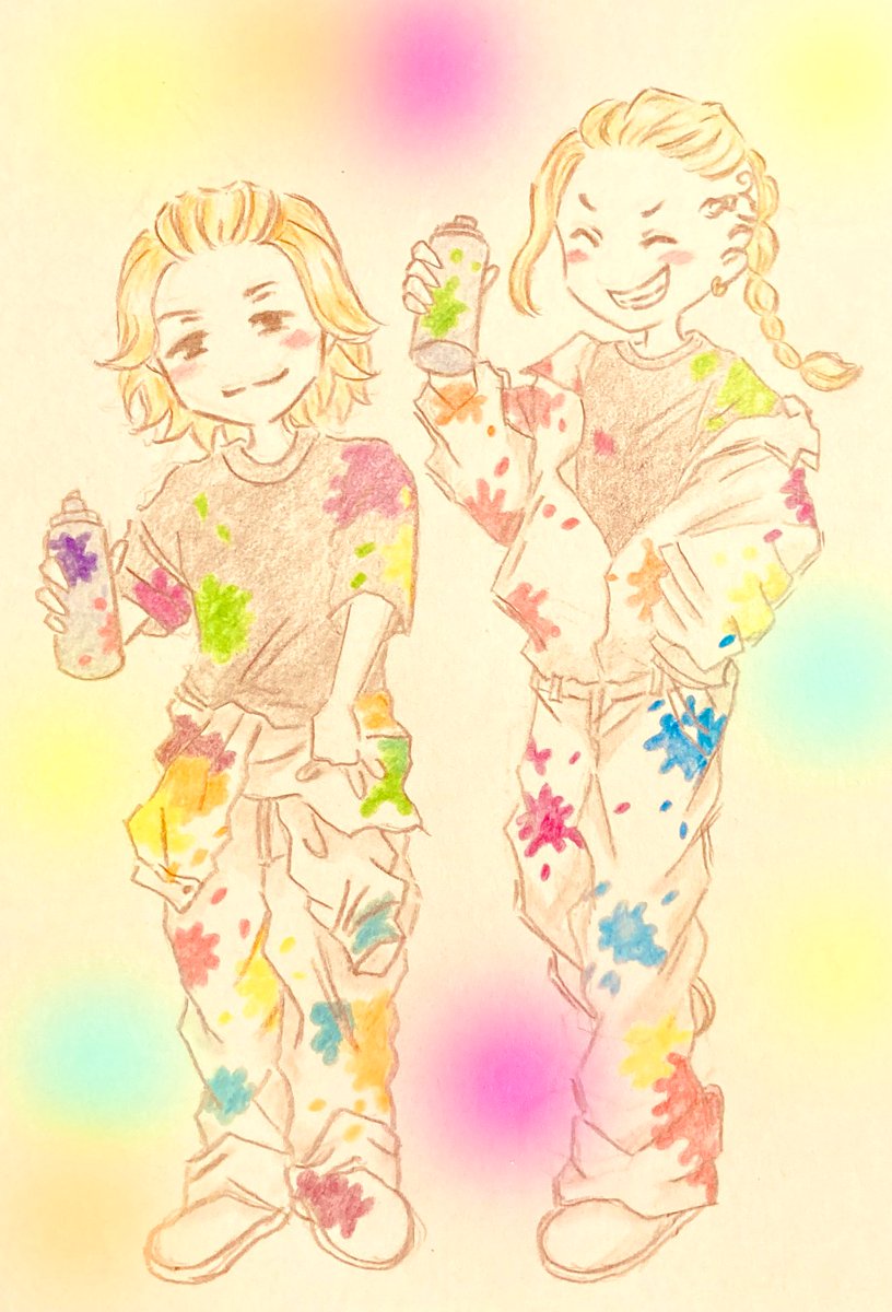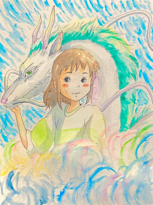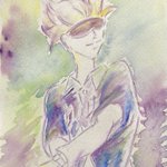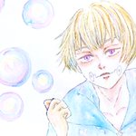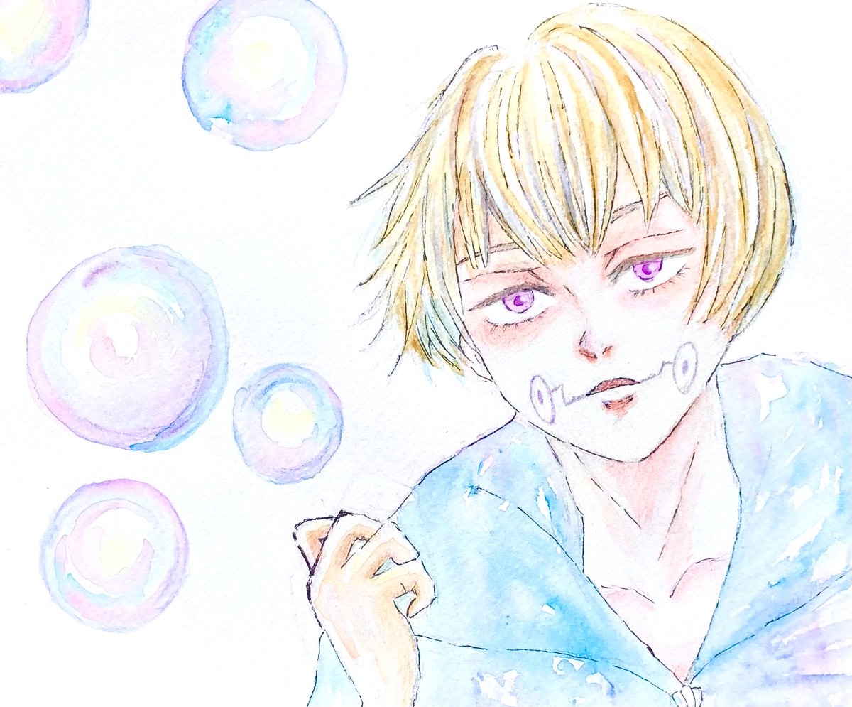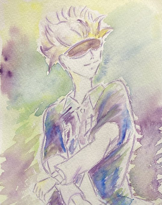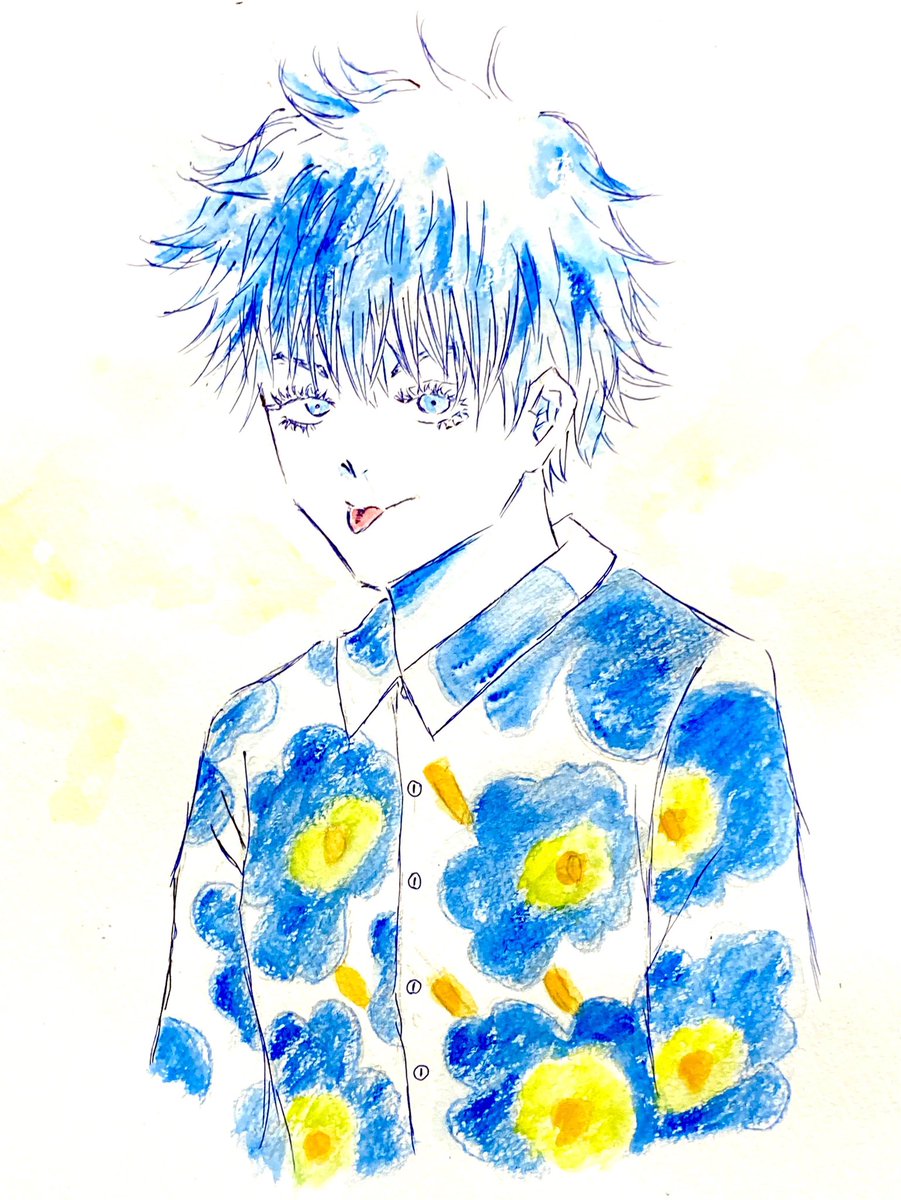 #五条悟生誕祭2021 #五条悟誕生祭2021 上手く描けなかったけど、お祝いさせて下さい😂 一枚目は水彩で水たっぷり、二枚目は水彩色鉛筆で水少量で塗ってみました。先生のシミがついたシャツをマリメッコ、という場面を見て以来、マリメッコ柄を着せたかったのです😍
