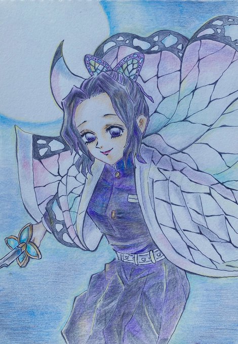 #胡蝶しのぶ生誕祭2022 #胡蝶しのぶ誕生祭2022 🕷山で、舞い降りる場面が好きです🥰フィギュアの写真を参考に描きました。 今使ってる色鉛筆が短くなったら、新しい色鉛筆欲しいなと以前から思っているのですが、まだまだ先が長い😂使わなきゃ短くならないよね💦 頑張って使うぞ‼️
