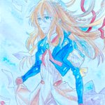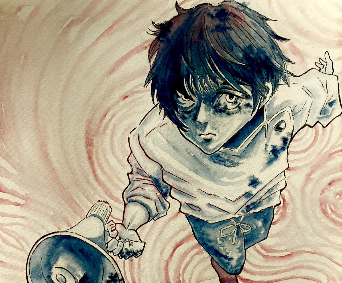 #乙骨憂太誕生祭2022 #乙骨憂太生誕祭2022 映画主題歌のジャケット模写です。インディゴとレッド、2色の絵の具で描きました🥰 乙i骨くん、サラッと甘いセリフを言ってのけたり、時折大胆な行動に出たり😘、オドオドした姿との二面性が好きです😍