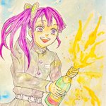 #栗花落カナヲ生誕祭2022 #栗花落カナヲ誕生祭2022 ノンアルシャンパンで乾杯‼️ どーま戦の彼女はすごく表情豊かですよね🥰刀を取られちゃう場面をアレンジしました。 シャンパンはイエローとゴールドの絵の具をスパッタリングと吹き流し(絵の具をふーっと吹くヤツ)で描きました😆
