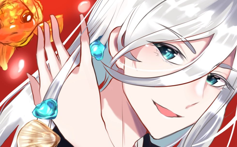 #パルミー超自撮りイラコン 夏!海!貝殻!金魚!和服男子! 好きなものを詰め込んだイラコン作品 『超自撮り☆オレたちを美少女・美少年化!』イラストコンテストの素材写真を使用したイラストです。