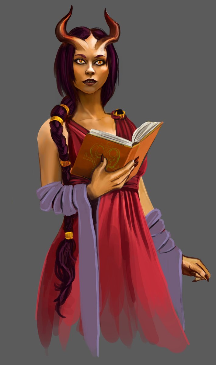 Lavinia, Tiefling Archivist #dndart #dnd5e #characterart