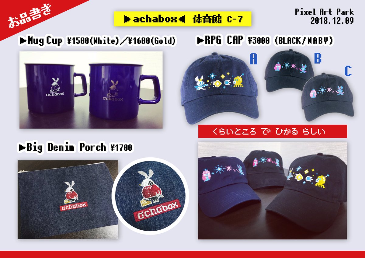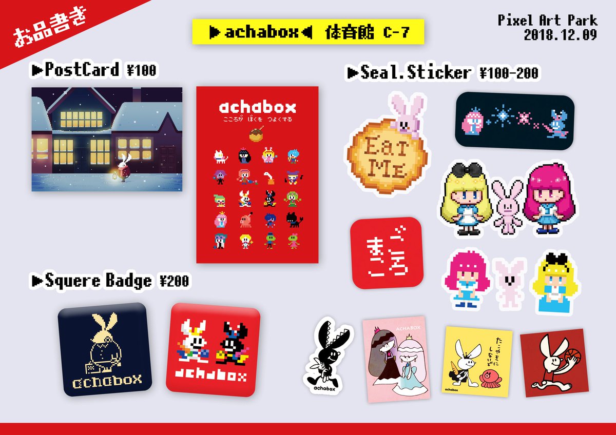 20 26 【achabox/お品書きや写真まとめ】 体育館 C-7にてお待ちしております〜!! #pixelartpark 18/12/09 08:37